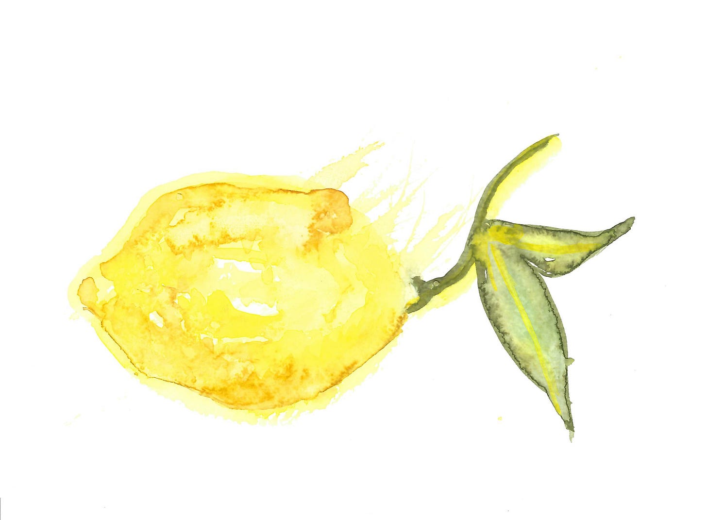 This lemon was fun to paint; I added salt while it was wet to get the texture of a lemon’s skin. I wiped it away before it was dry. The resulting swoosh of color inspired me. Yes, I thought. Be less occupied with accuracy and more interested in expression.